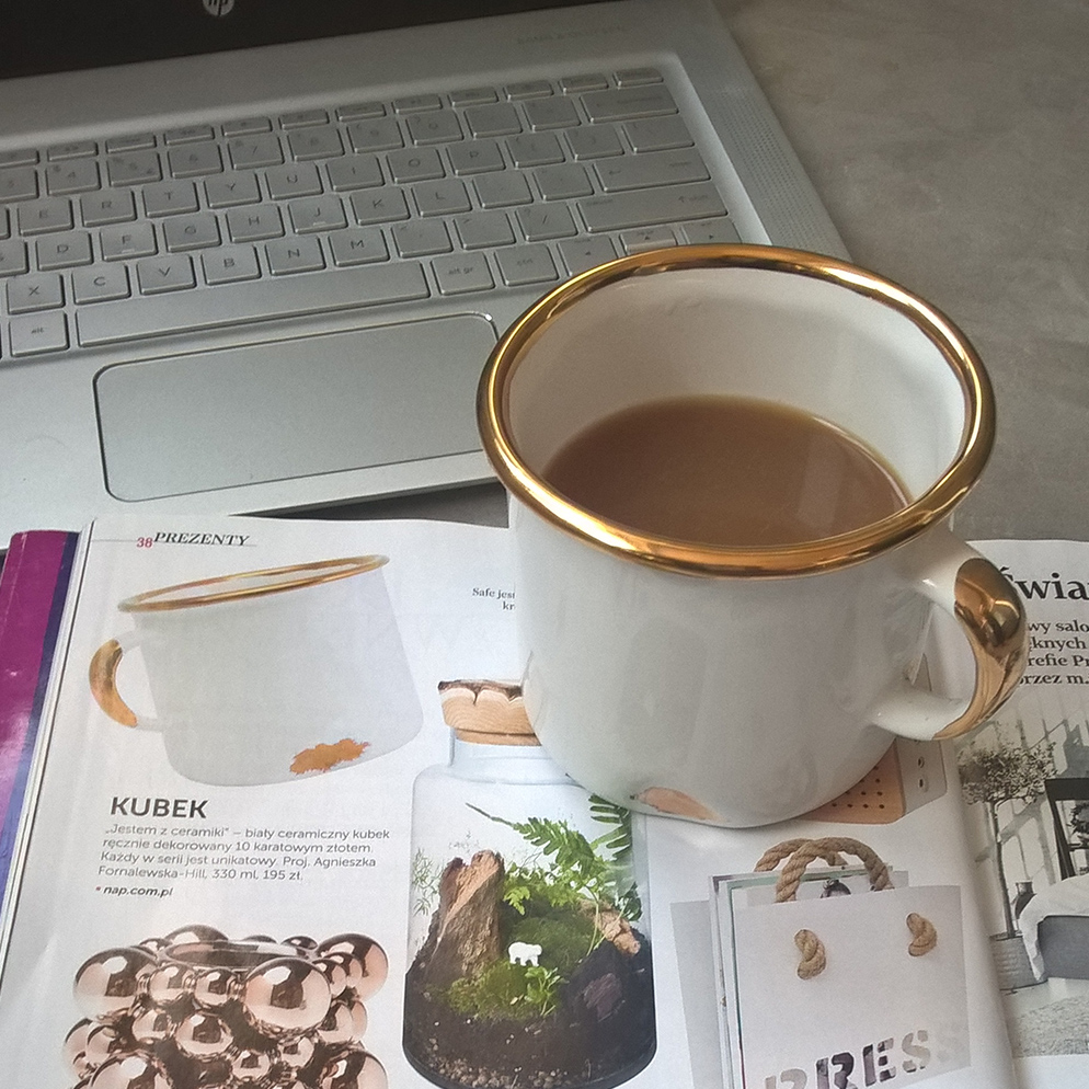 The "I am a Ceramic" mug with real gold finish from Agaf Design on the front cover of Usta Magazine.